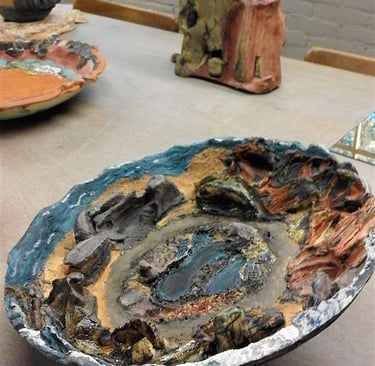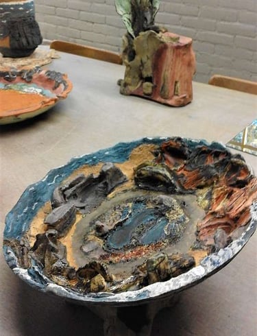 Voor kunstenaar, docent en keramist Ria Pastoor is het werk dat ze laat zien bij deze expositie voor haar een rakend thema: de vele oorlogen en mensen op de vlucht. Op de vlucht voor honger, geweld of ongelijkheid. Je zult maar geboren zijn in een land uit verjaagd wordt. Haar werk toont ook haar eigen weg. Zoekend na verlies van dierbaren naar een nieuw pad om weer verder te gaan. Essentieel is in gesprek blijven, in verbinding blijven met de ander. Voor Ria is communicatie essentieel. Op wereldniveau en dichtbij. Met het mooie materiaal klei probeert zij deze thema's uit te werken. Maar ook het thema natuur speelt een rol in haar werk door een recente reis naar Ierland en de ruige natuur die zij daar zag.